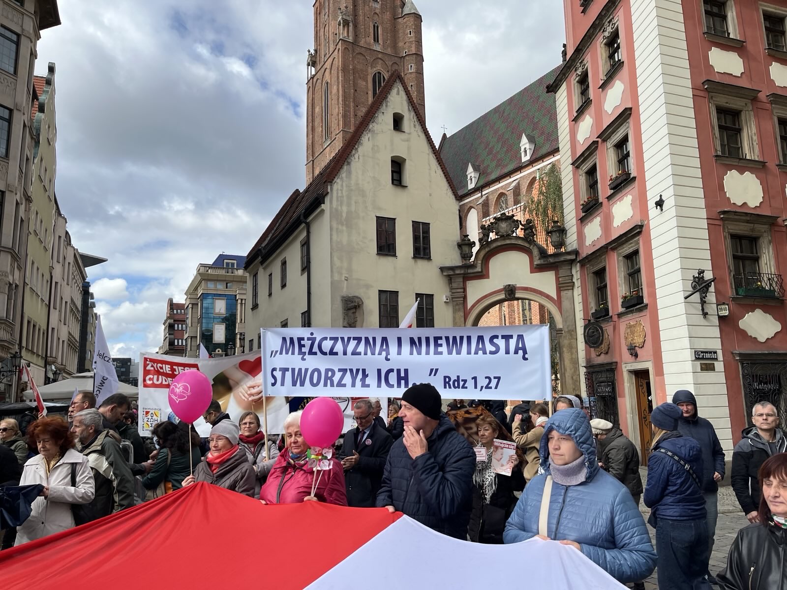 Cieszy mnie, że mimo różnic w wieku, zawodach czy życiowych doświadczeniach, potrafimy spotkać się razem, by wspólnie stanąć w obronie tego, co dla nas ważne. Taka wspólnota daje siłę, która może zwyciężyć pozornie znacznie silniejszego przeciwnika. I nie są to tylko piękne słowa. Wystarczy przywołać wydarzenia choćby z tego roku. Wiele osób, które uczestniczyło we wrocławskim marszu, pamiętam z zimowych protestów przeciwko deprawacji dzieci w szkołach. Od tego czasu nie minął nawet rok, a udało się nie tylko wymusić na rządzących nieobowiązkowy charakter przedmiotu mającego zawierać elementy seksedukacji, ale także, jak wynika z najnowszych danych, doprowadzić do tego, że większość rodziców wypisała swoje dziecko z tych zajęć. To jest właśnie sukces ludzi, którzy zmobilizowali się, aby wspólnie stanąć w obronie dzieci.